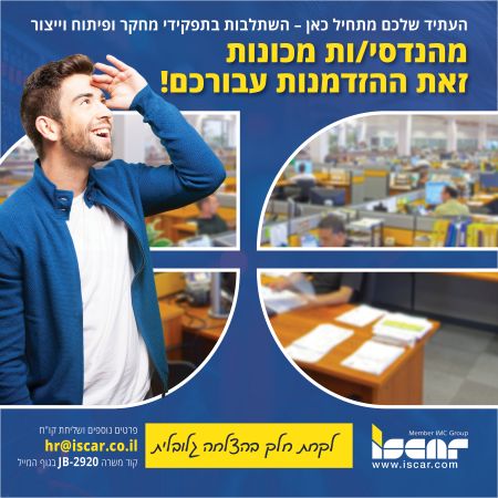 מרגישים שזה מתאים לכם? שלחו קו"ח לכתובת מייל Hr@iscar.co.il בציון קוד משרה 2920 בגוף המייל.